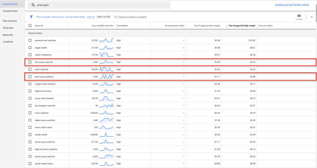 Let’s say, you sell premium or high-end wrist watches on your Shopify store. In your case, relevant seed keywords are: