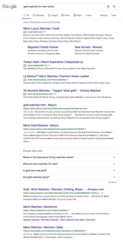 Therefore, if someone is typing in a keyword that is related to gold watches for men, and end up on your site (as a result of you organically ranking for a ‘long tail keyword’ with your SEO efforts) there’s a good chance that they’ll convert to paying customers.